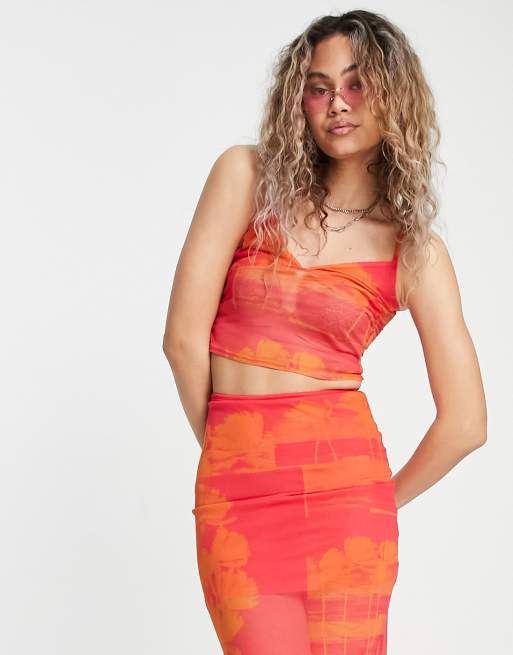 Collusion Flower Print Mesh Cami In Pink Part Of A Set Asos